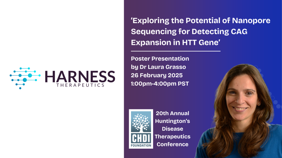 Our Principal Scientist, Laura Grasso will be presenting a poster titled ‘Exploring the Potential of Nanopore Sequencing for Detecting CAG Expansion in HTT Gene’. This work showcases how nanopore sequencing could be used to assess the efficacy of our lead ASO programme targeting FAN1 nuclease, a key protective protein in Huntington’s Disease progression.